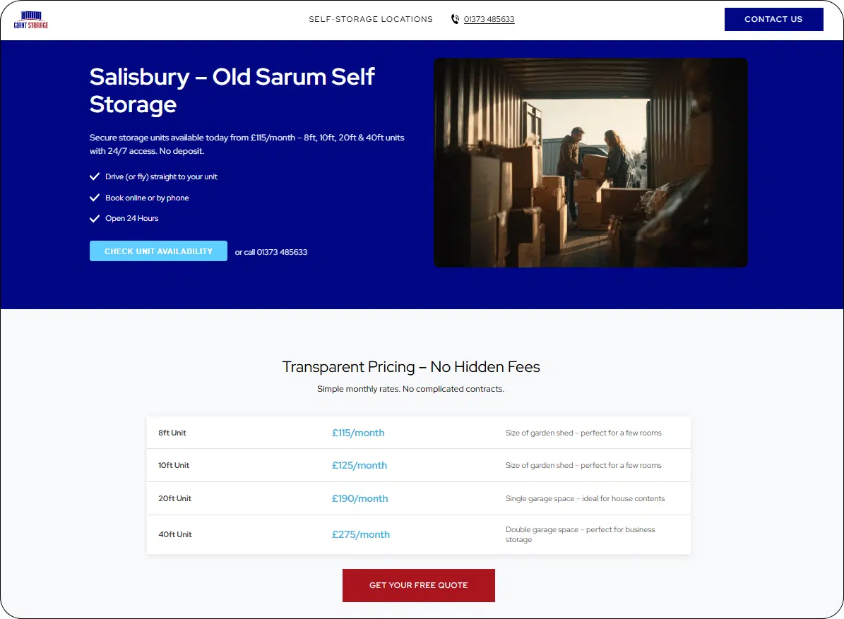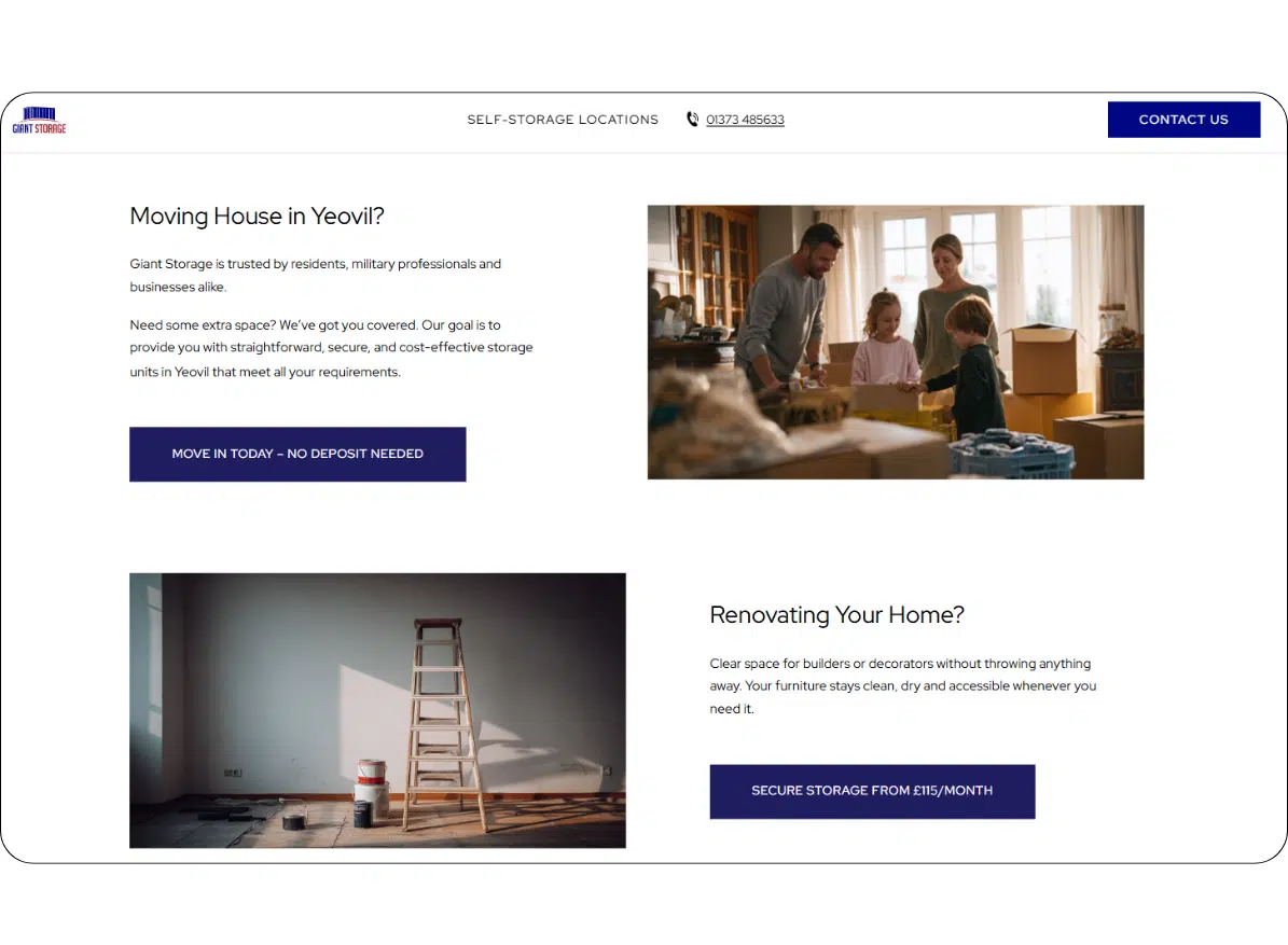 Our Small Business Website template made this scalable. The page structure is repeatable, so when Giant Storage opens a new location, we can spin up a fully optimised page in hours rather than days. Same quality. Same SEO foundations.